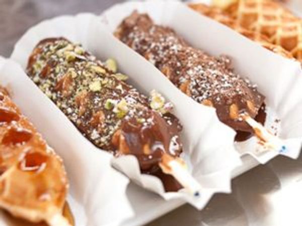 Freshly made Waffle on a stick served warm with a choice of delicious toppings and sauces from below.